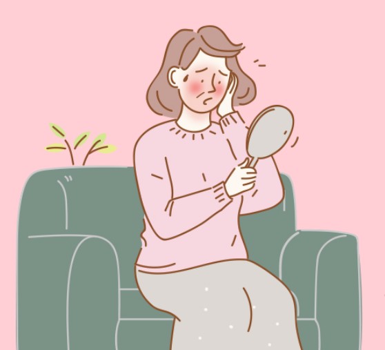 피부의 결이 변하게 되고, 건조하며 거칠어 진다던지 하는 등의 피부와 모발이 건조해지고 푸석푸석해지는 외적인 용모변화도 오게 됩니다. 안면홍조와 더불어 빨갛게 되고 후끈 달아오르며 거칠거칠할 수 있습니다.