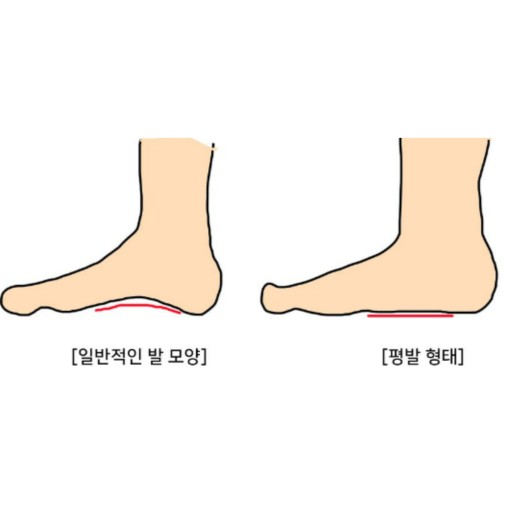 선천적 또는 후천적으로 발바닥의 아치가 무너져 평평한 상태입니다.