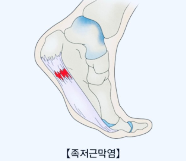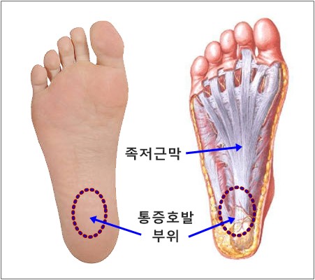 발바닥 아치 밑을 지탱하는 족저근막에 염증이 생긴 상태입니다.